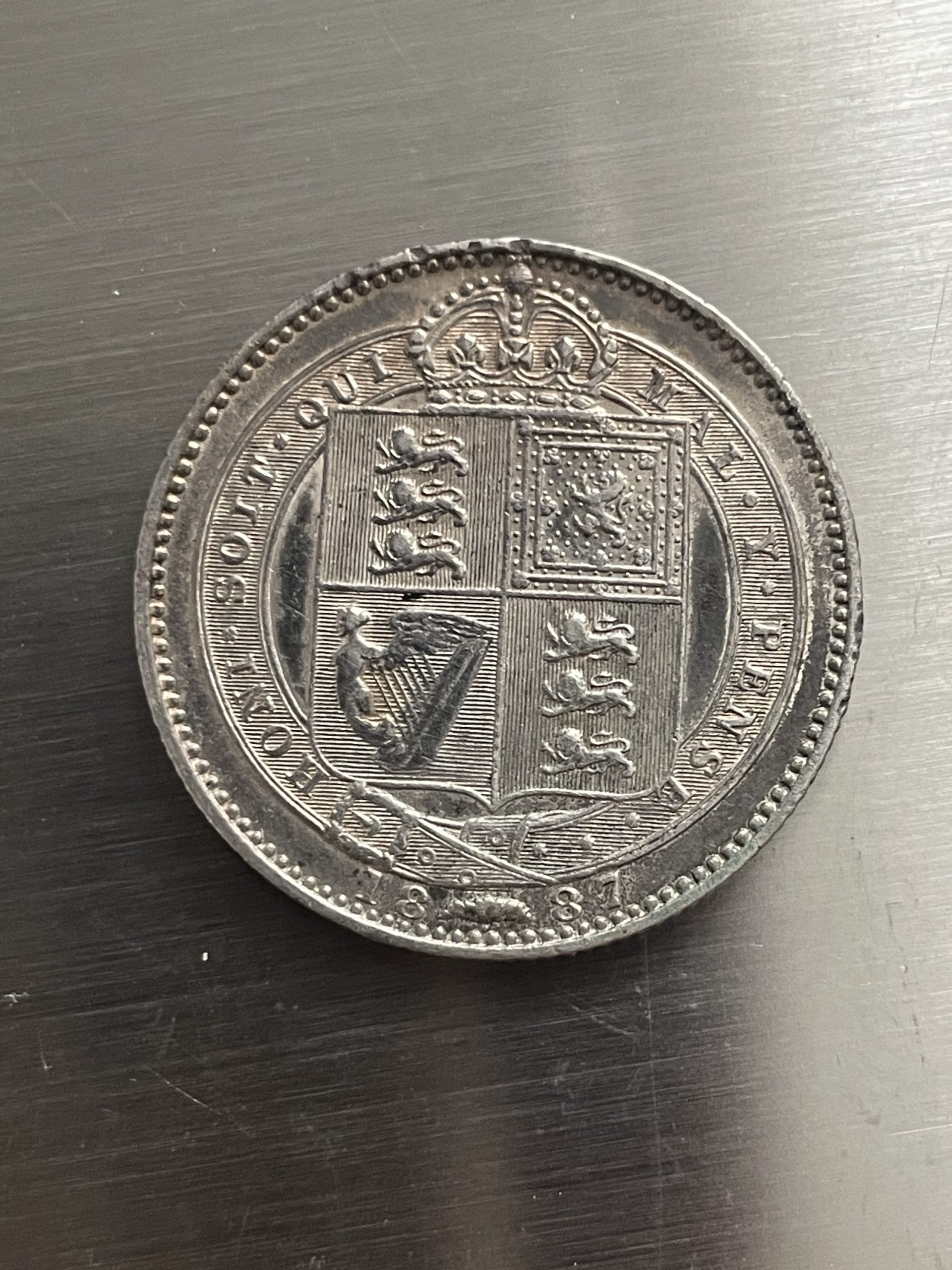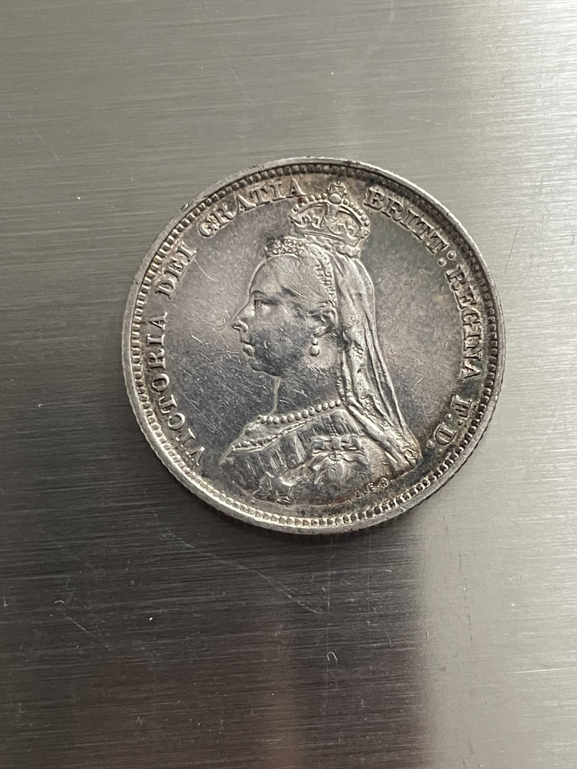 1887 silver shilling Jubilee head fine coin