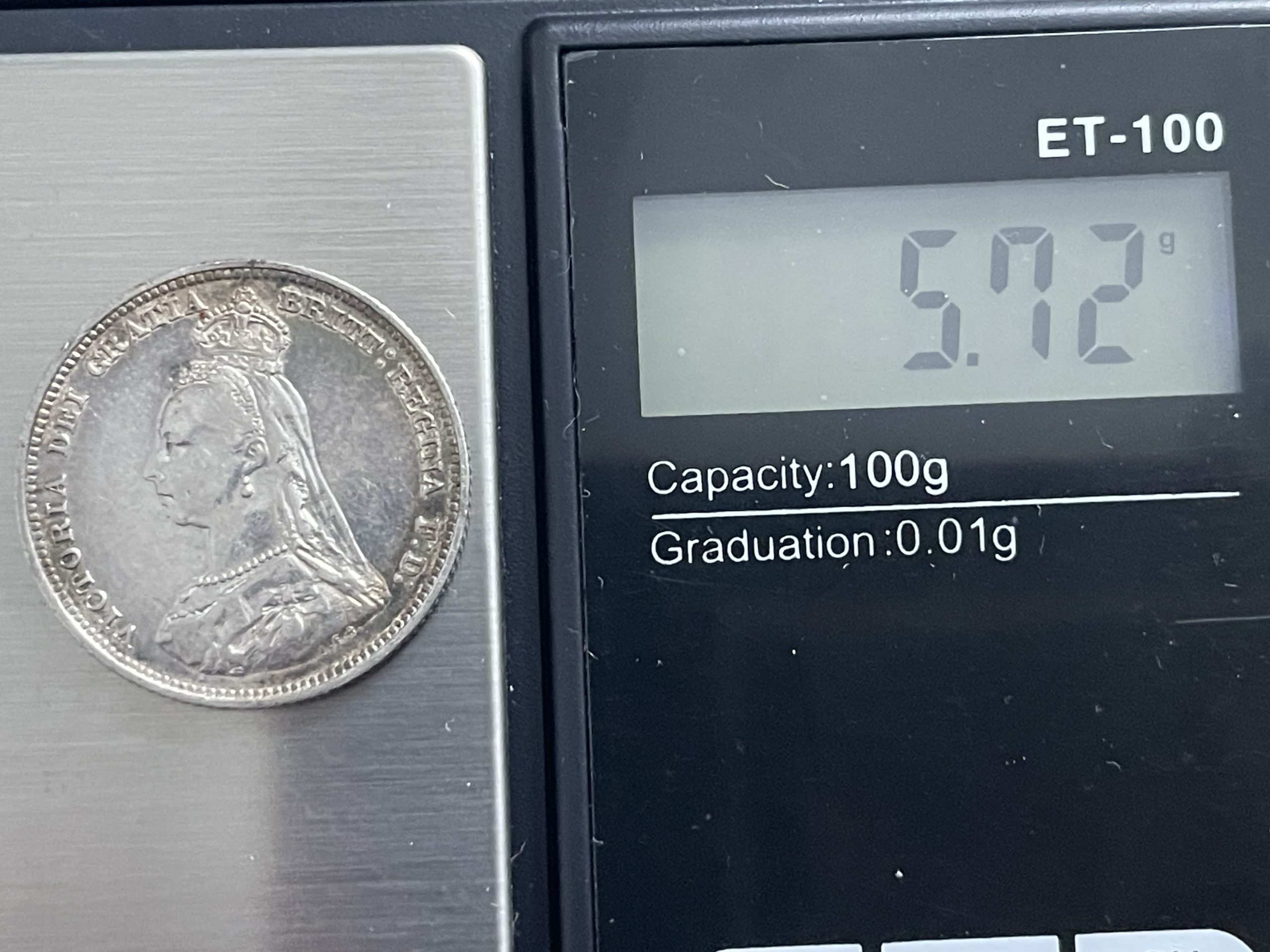 British silver shillings minted between 1816 and 1946 typically weigh 5.66 grams (or 5.655g), with a diameter of 23.6mm.